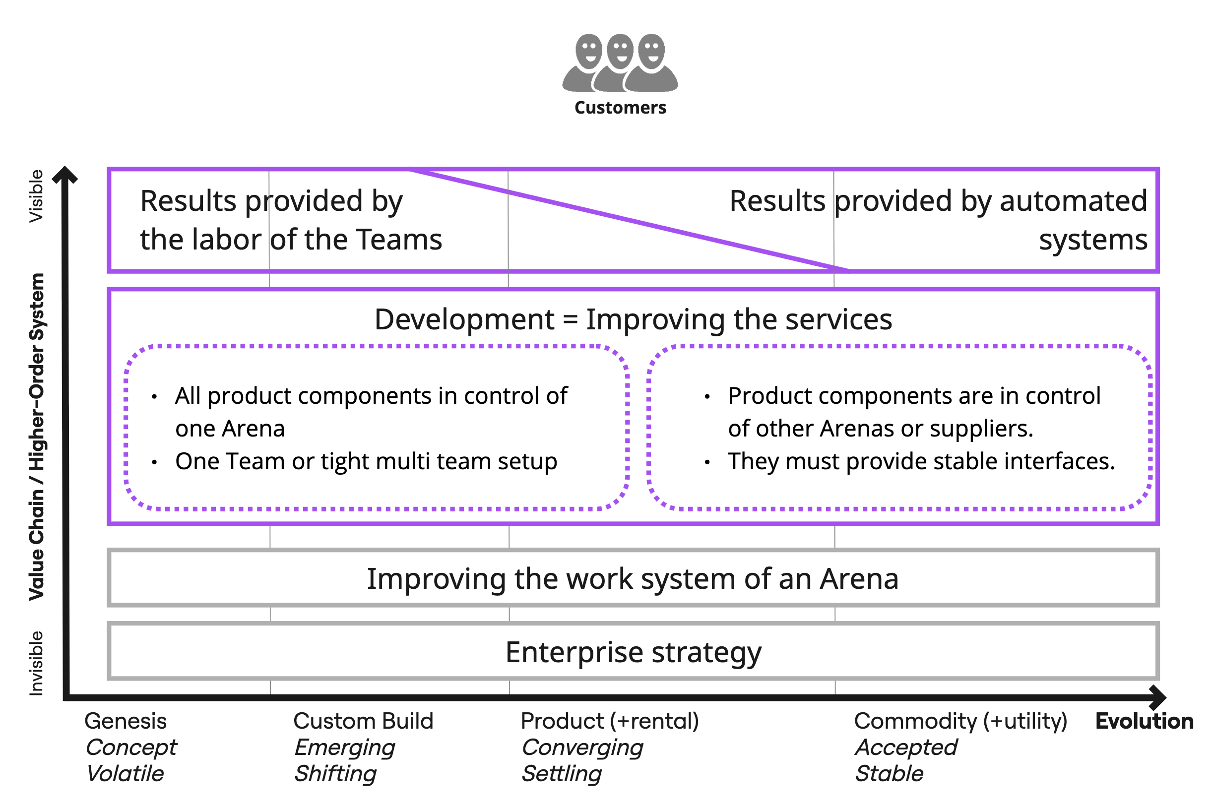- The work that produces results for customers: services provided by the labor of Teams and services or goods provided by automated systems. This is what the customer sees and uses.