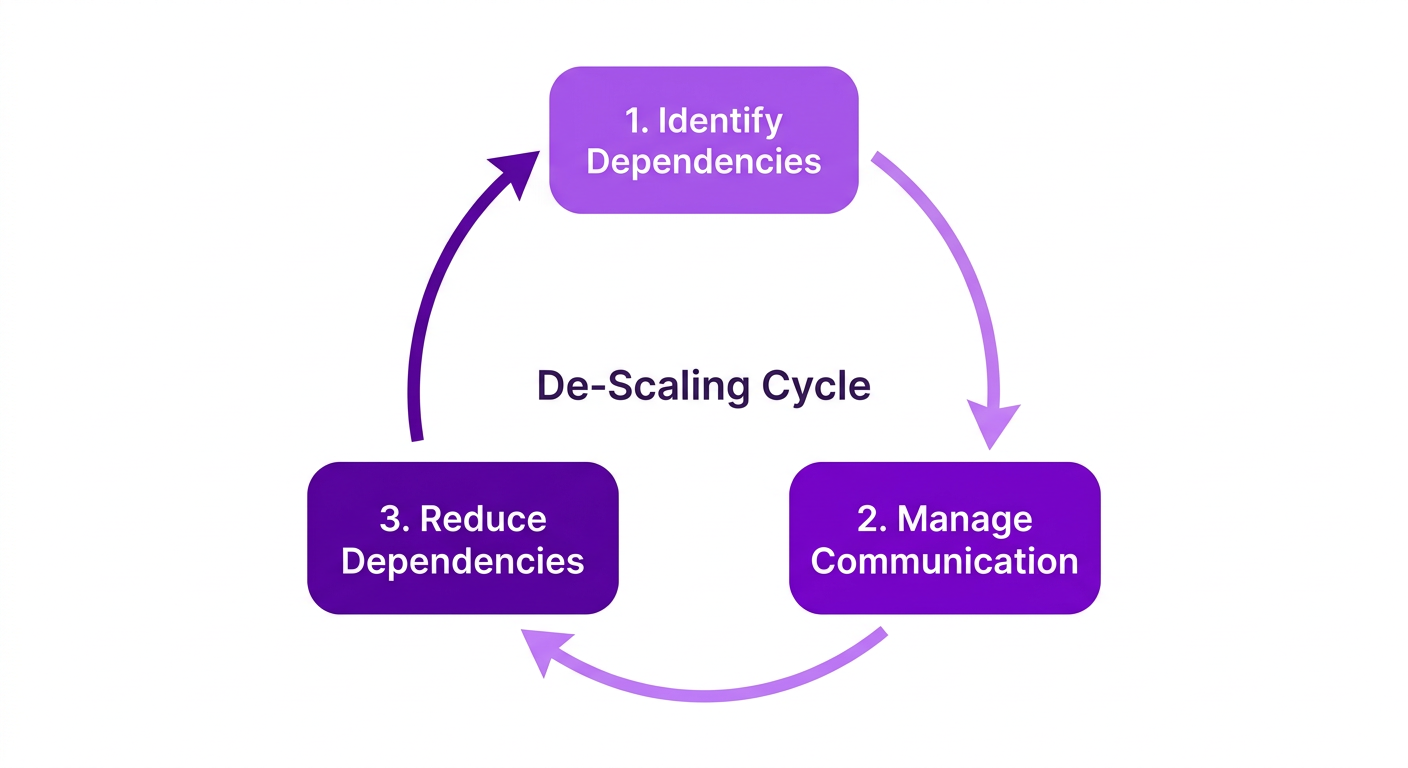 Stefan Roock and I call this counter-practice the De-Scaling Cycle, a continuous effort to reduce complexity across organization and product structure: